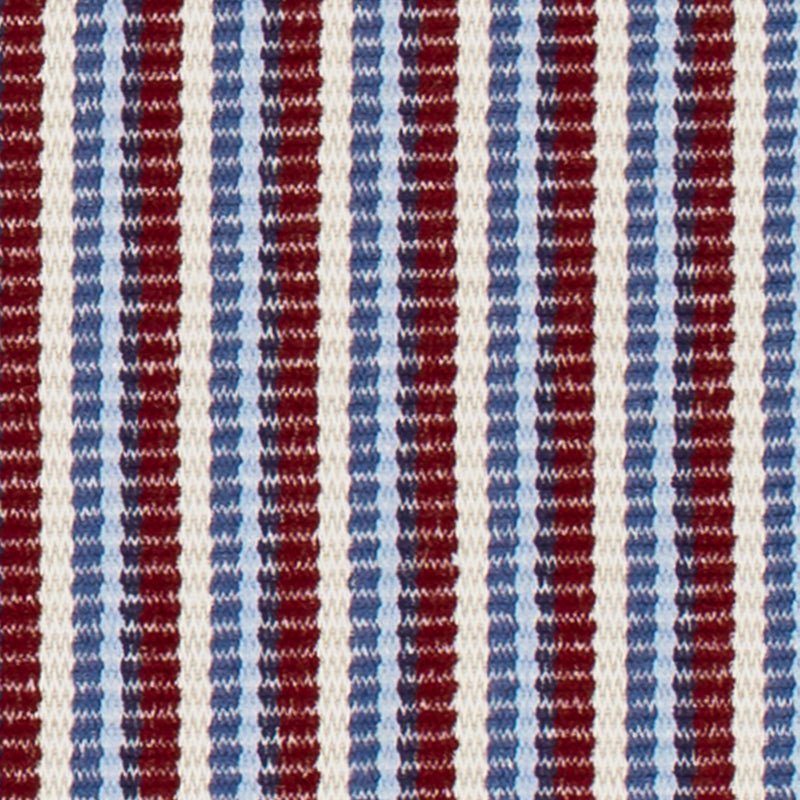 This classic red and blue striped upholstery fabric features alternating vertical bands in deep burgundy...