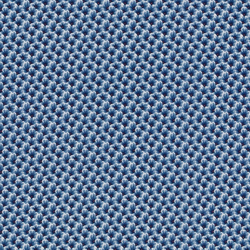 This sapphire blue print cotton fabric features an elegant, densely packed damask-inspired pattern in white...