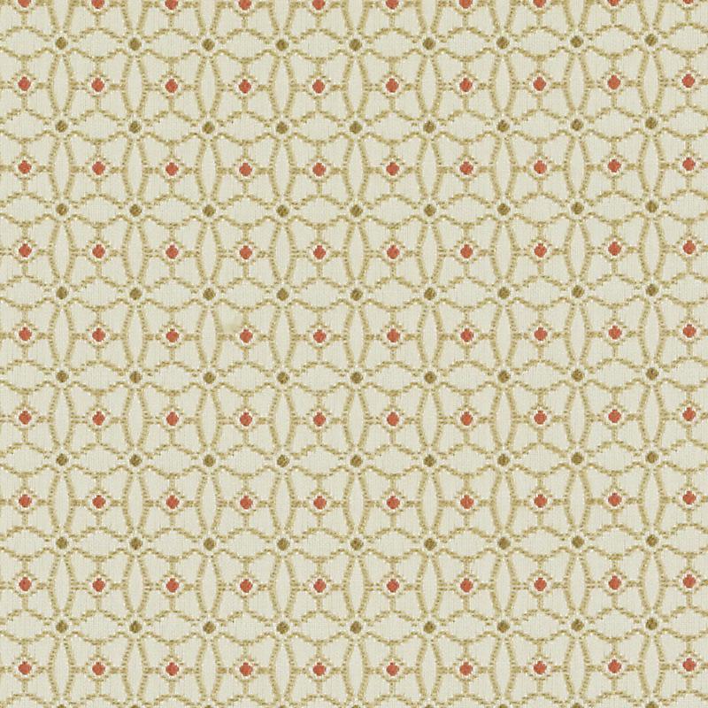 This persimmon and cream geometric upholstery fabric features a sophisticated octagon and lattice pattern in...