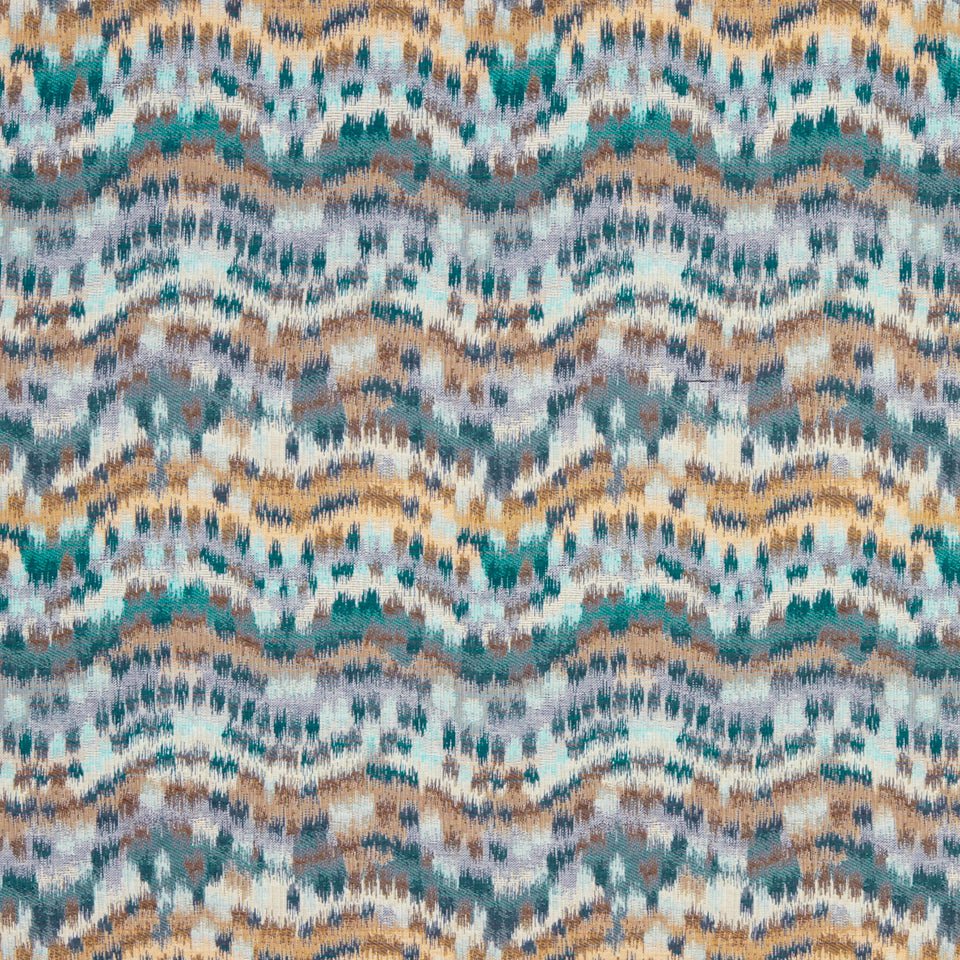 Pointed Peaks features a striking turquoise and cream ikat pattern with distinctive diamond shapes and...