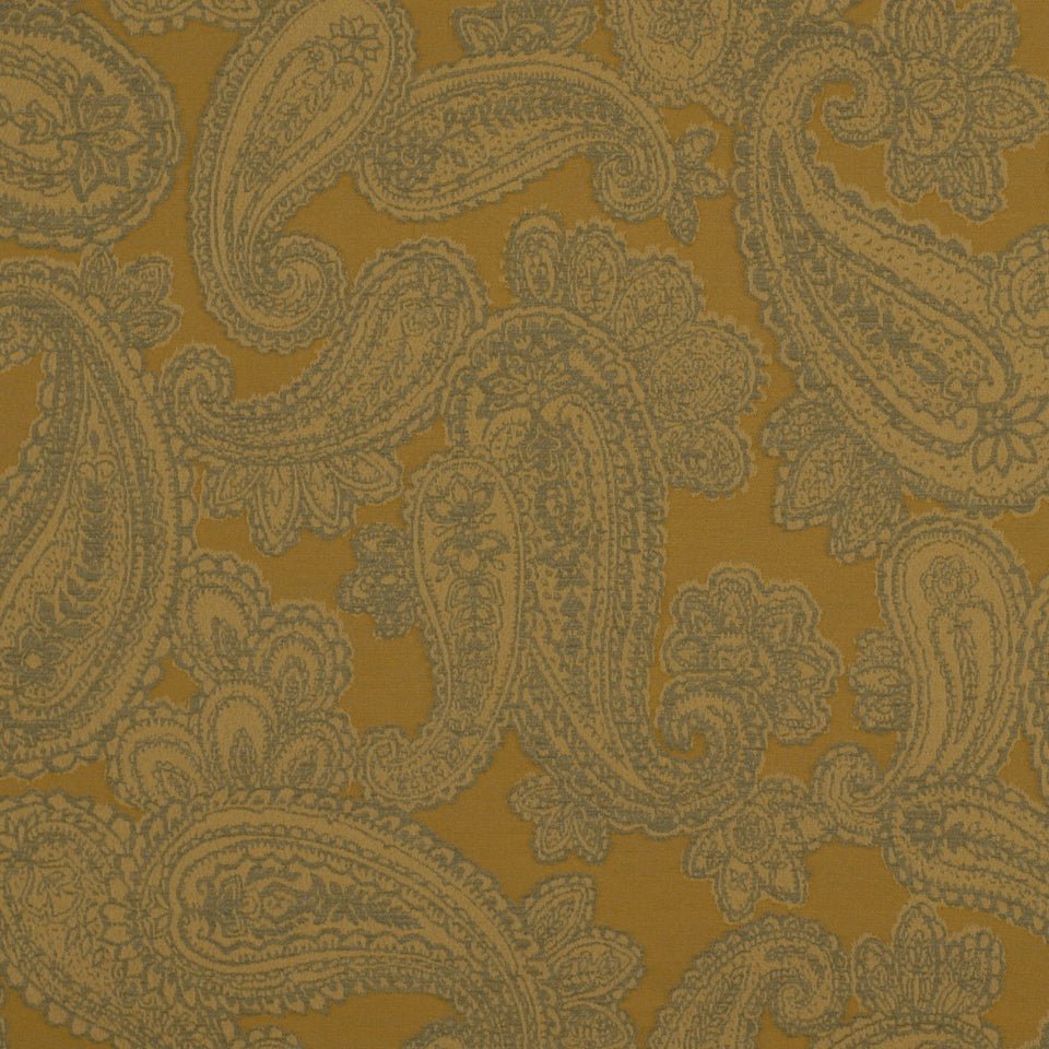 The PALMESE upholstery fabric in Spa features an elegant golden ochre background with intricate pale...