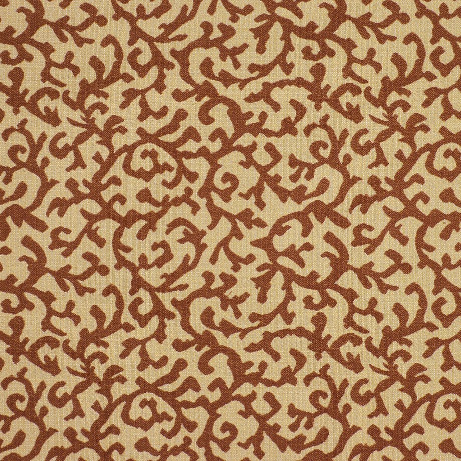 The BASTROP upholstery fabric features a rich nutmeg brown ornamental pattern on a warm cream...