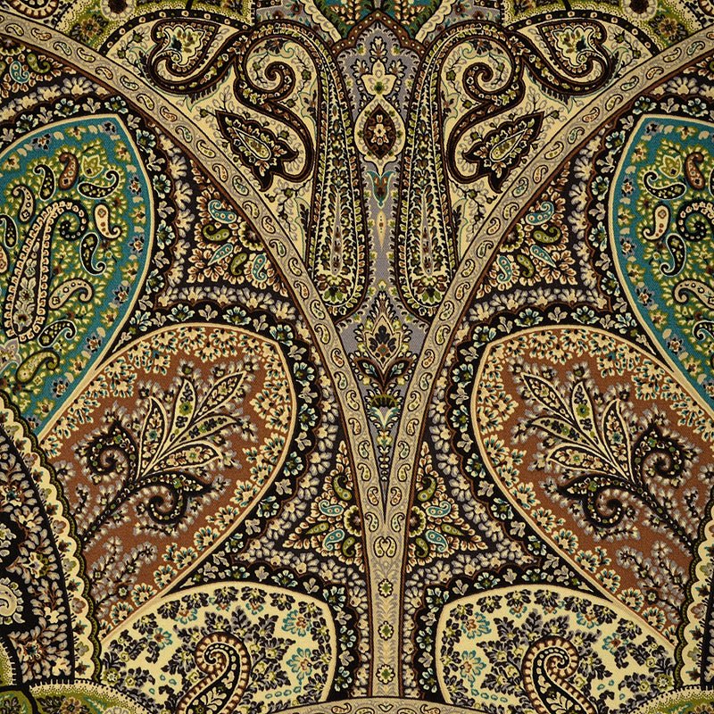 This stunning emerald paisley print cotton fabric features rich jewel tones of teal, bronze, cream,...
