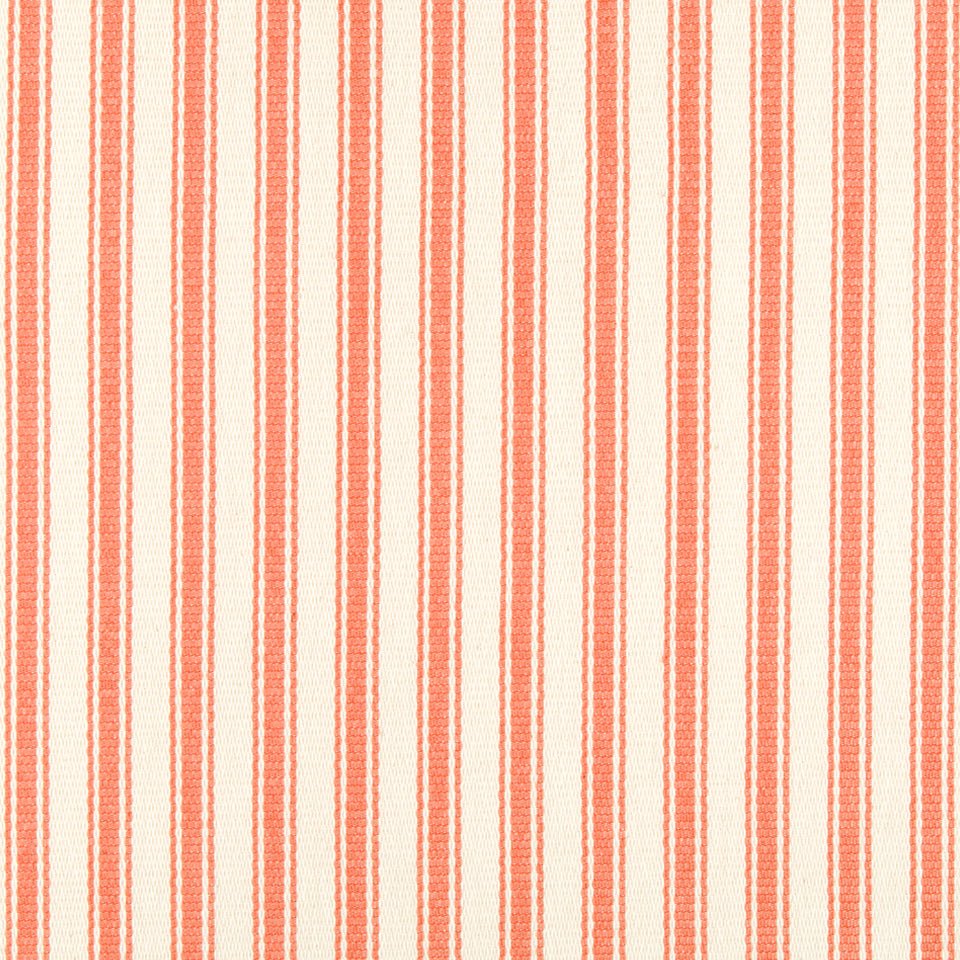 PADULA in Coral Reef features warm coral and cream striped ticking pattern on 100% cotton...
