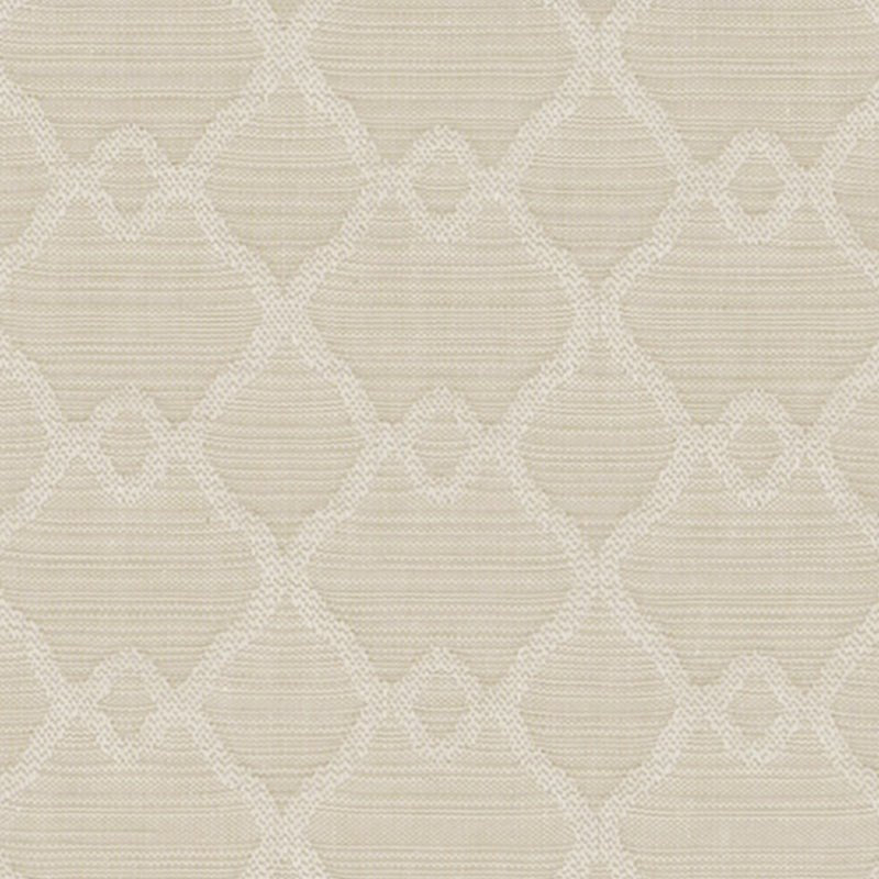 This celadon upholstery fabric features a sophisticated geometric diamond lattice pattern in soft cream tones...