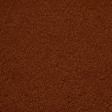 The APRILIA upholstery fabric in Date features warm, rich rust-brown tones with an elegant scrolling damask pattern that adds sophisticated depth to any space. This durable polyester-rayon blend is perfect for upholstering armchairs, creating decorative throw pillows, or designing custom window treatments. The luxurious scroll motif and warm color palette make it an ideal choice for traditional or transitional home décor.