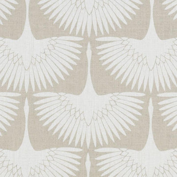 This natural and cream bird print fabric features elegant wing motifs in a sophisticated geometric layout, perfect for creating statement curtains, decorative pillows, or upholstered furniture pieces. The linen and rayon blend offers a beautiful natural texture with excellent durability and drape. Ideal for adding understated elegance to any room with its neutral palette and striking contemporary design.