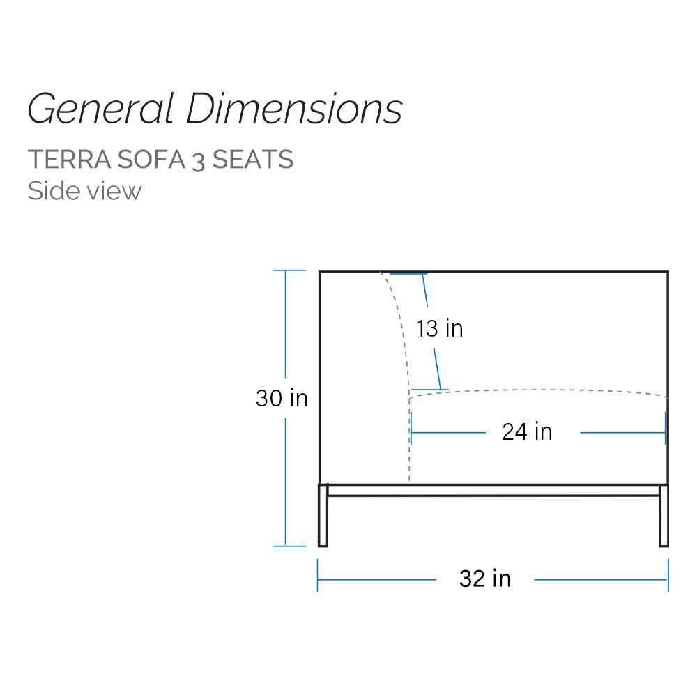 Terra is a contemporary sofa with sleek lines and metal legs that looks great from any angle. Upholstered with fabric. The cushions are filled with different density foam and natural goose down filled covers. Metal base and legs with solid wood frame.