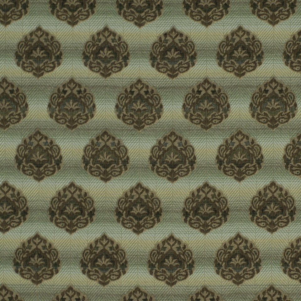 The Achill Island upholstery fabric in Myrrh features a sophisticated chevron and medallion pattern with...