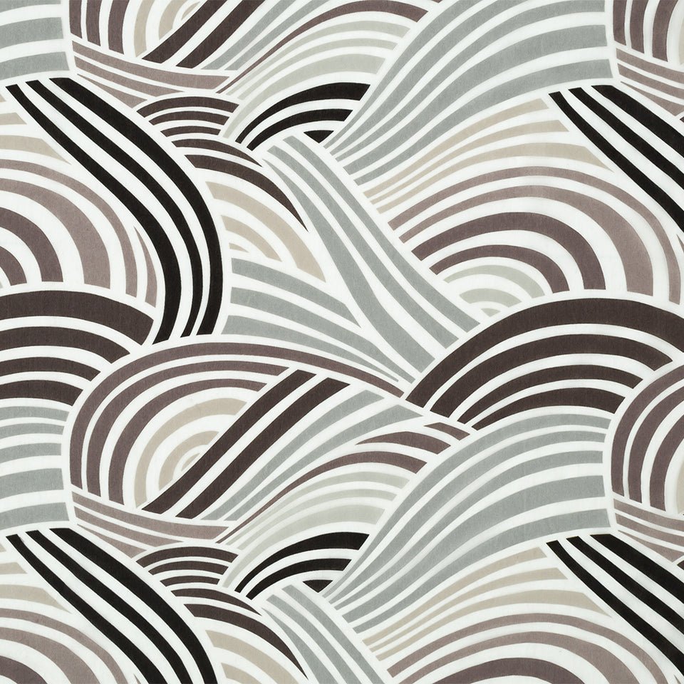 The Sultry Sheer in Fog features a sophisticated palette of charcoal, taupe, cream, and soft...
