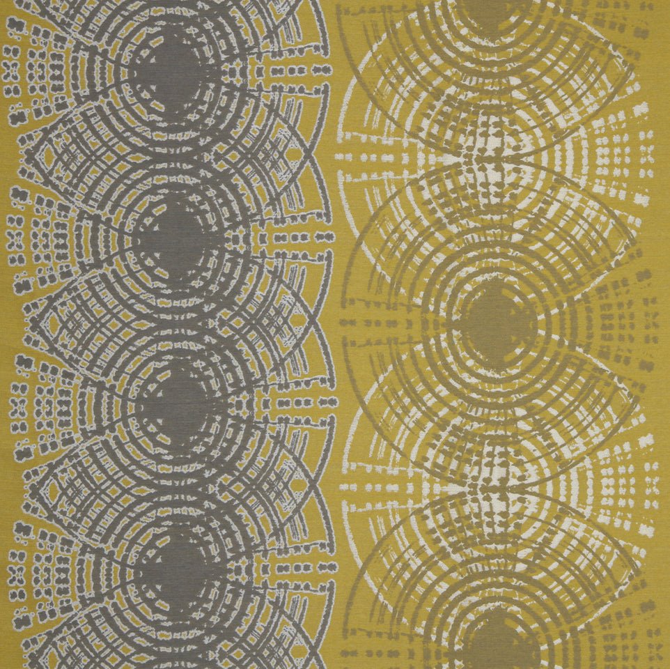 The Ombre Loop upholstery fabric features a sophisticated palette of golden yellow, warm taupe, and...