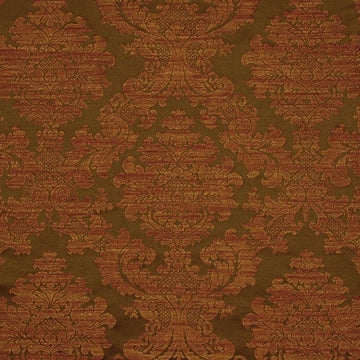 The Allemande multipurpose fabric features a rich paprika and deep olive damask pattern with intricate jacquard detailing, creating an elegant classical aesthetic. This cotton-rayon blend is perfect for upholstery projects, decorative pillows, window treatments, and furniture applications. The balanced fiber content ensures durability while maintaining a refined appearance suitable for traditional and transitional interiors.