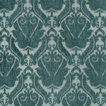 Dream Lake features an elegant teal and cream damask chenille pattern that brings sophisticated charm to any room. This upholstery fabric is perfect for armchairs, settees, throw pillows, and window treatments. With 79% rayon and 21% polyester, it offers durability and a luxurious texture ideal for both residential and commercial applications.