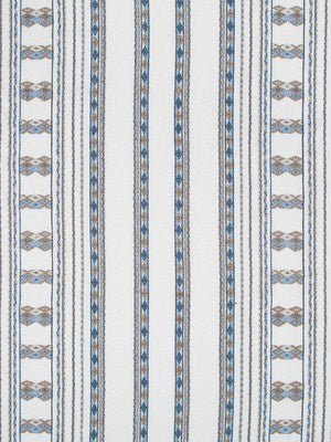 The FULANI multipurpose linen features a sophisticated dove blue and taupe striped pattern with delicate embroidered accents on a natural linen ground. Perfect for upholstery projects, throw pillows, or curtain panels, this 100% linen fabric offers durability and elegant style. The refined color palette and woven texture make it an ideal choice for contemporary and traditional home decor applications.