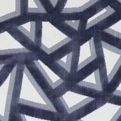This French blue and cream abstract velvet upholstery fabric features bold geometric stripes with a sophisticated, modern aesthetic. Perfect for statement armchairs, decorative pillows, or window treatments, this durable blend of 52% Bemberg and 48% cotton offers luxurious texture and lasting elegance. The striking pattern and rich color palette make it ideal for contemporary furniture projects and home décor accents.