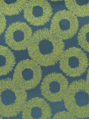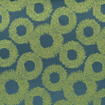 The LECREOLE upholstery fabric in Neva Green features a striking sketched sunflower pattern with lime-yellow radiating petals against a deep teal background. This durable polyester blend is perfect for upholstering armchairs, accent chairs, or creating statement throw pillows and window treatments. The contemporary botanical design brings artistic flair to any interior space while the eco-conscious blend includes post-consumer recycled polyester.