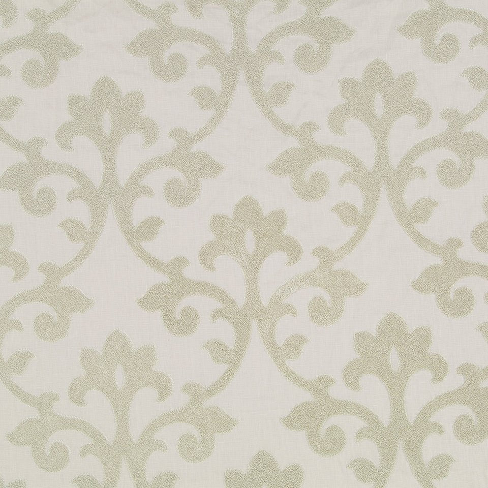 The Sorrento fabric in Travertine features an elegant cream and sage damask-inspired pattern that brings refined sophistication to any space. This versatile linen and viscose blend is perfect for upholstered furniture, decorative pillows, curtain panels, and window treatments. The natural linen ground provides durability and beautiful drape, while the embroidered viscose details add subtle texture and visual interest.