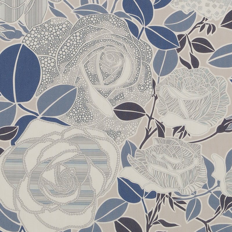 This elegant cadet blue and cream botanical linen fabric features intricate rose motifs with dotted and linear textures, creating a sophisticated botanical pattern. Perfect for upholstery, throw pillows, curtains, and window treatments. The 100% linen multipurpose fabric offers natural durability and a refined aesthetic for any interior design project.