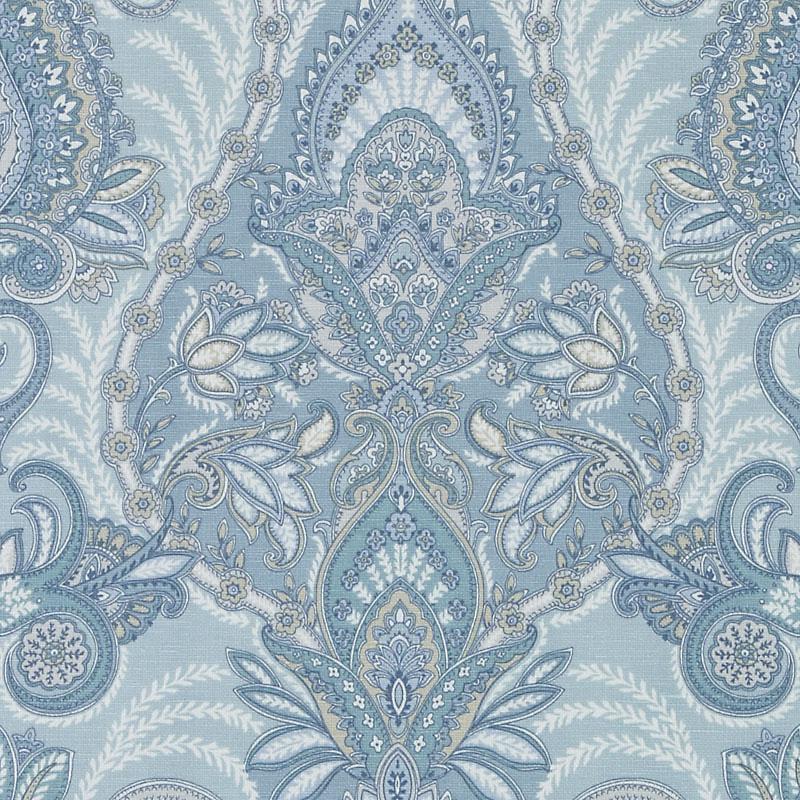 This aqua paisley print fabric features intricate damask-inspired motifs in soft blue and cream tones, offering timeless elegance for any room. The 55% cotton and 45% linen blend makes it ideal for upholstery, decorative pillows, curtains, and window treatments. Perfect for creating sophisticated home furnishings with natural texture and durability.