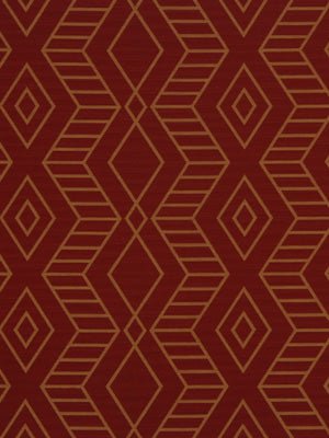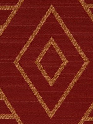 The Diamond Zone upholstery fabric features a rich ember red background with striking gold geometric diamond and hexagonal patterns, creating a sophisticated and modern look. This durable polyester-cotton blend is perfect for upholstering armchairs, sofas, and accent furniture, as well as crafting decorative pillows and window panels. The geometric pattern adds visual interest while the warm color palette complements both traditional and contemporary interiors.