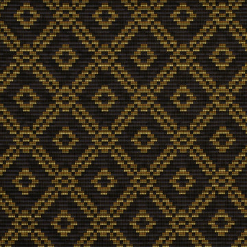 The DOUBLE DELIGHT in Nightfall features a striking geometric pattern blending warm gold tones with deep charcoal black, creating a sophisticated visual contrast. This polyester-rayon upholstery fabric is ideal for accent chairs, decorative pillows, or ottoman covers, combining durability with elegant style. The balanced weave of 64% polyester and 36% rayon ensures excellent resilience for both residential and commercial upholstery applications.