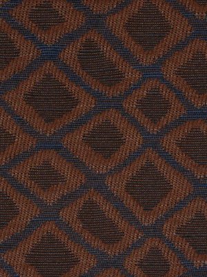 The HAMMOCK TIME upholstery fabric in Twilight features rich rust and deep navy tones woven in a captivating geometric diamond pattern. This 100% polyester fabric is perfect for upholstering armchairs, creating decorative throw pillows, or crafting window treatment panels. The sophisticated color palette and intricate geometric design make it an ideal choice for contemporary and transitional interior spaces.