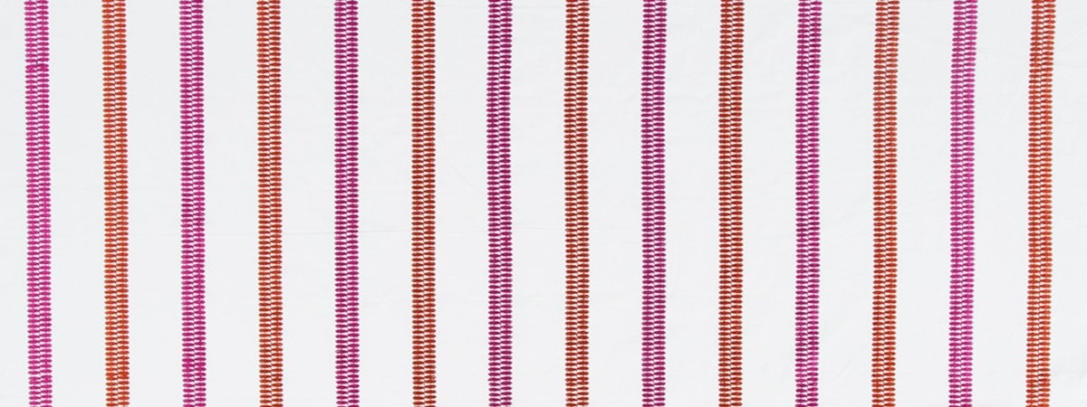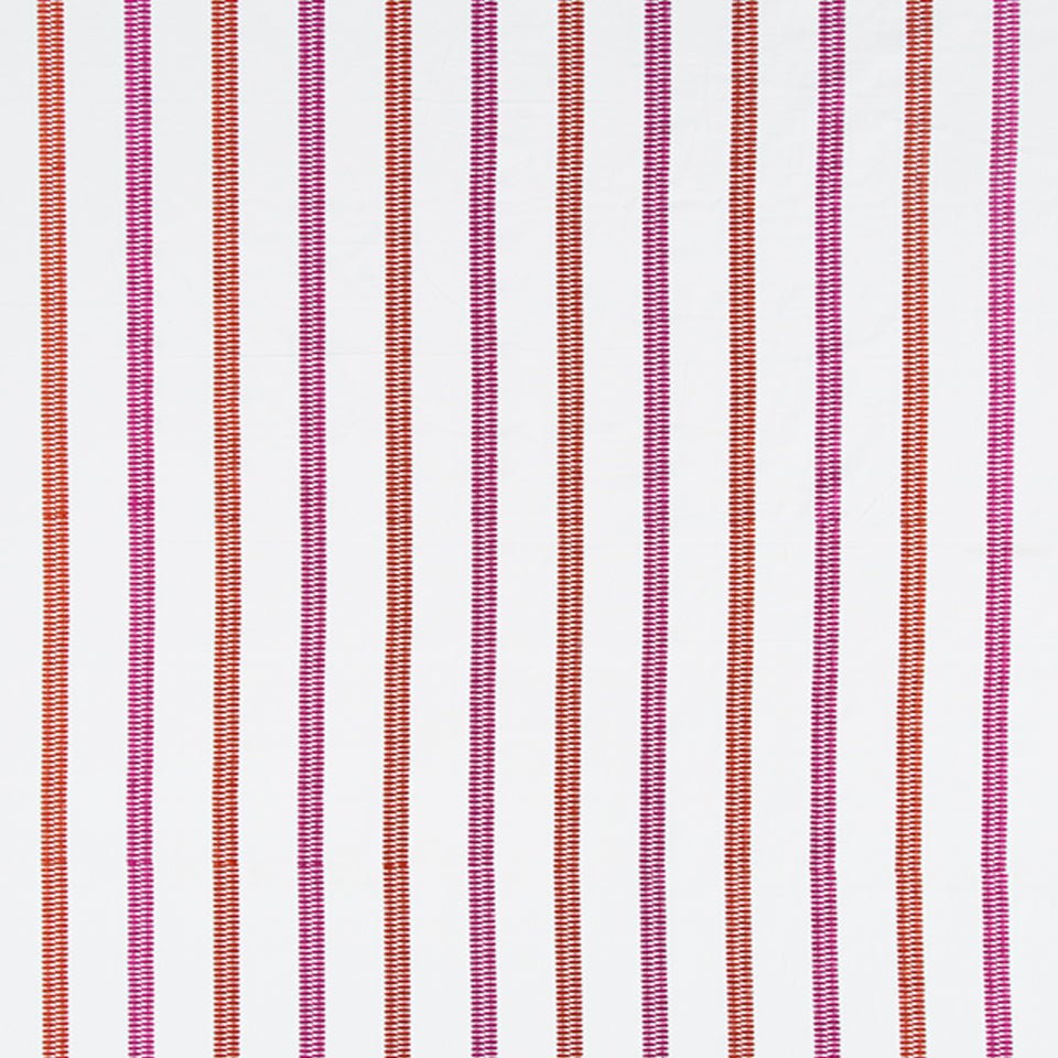 The Lucy Lane multipurpose fabric features a sophisticated striped pattern in vibrant tomato red and rich magenta tones on a crisp white ground. This 100% cotton base with 100% viscose embroidery is ideal for upholstery projects, decorative pillows, and window treatments. The classic stripe design brings contemporary style to armchairs, duvet covers, and fabric panels with excellent durability.