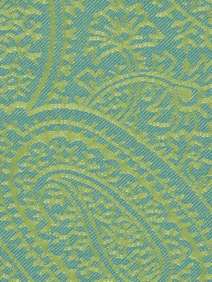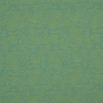 PAISLEY LAGOON upholstery fabric features a sophisticated seaside color palette with soft teal and lime green tones in an intricate paisley pattern. This 100% polyester fabric is perfect for upholstering armchairs, creating decorative throw pillows, or designing custom window treatments. The medium-scale paisley design adds visual interest while maintaining a refined, elegant aesthetic suitable for any room.