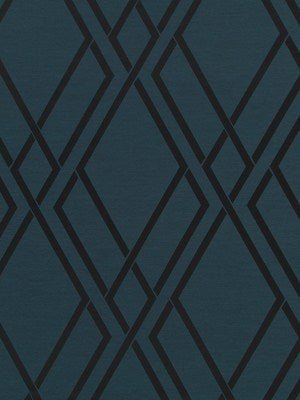 Threshold in Tourmaline features a sophisticated deep teal geometric diamond pattern with dark charcoal lines creating modern visual depth. This 100% polyester drapery fabric is ideal for window treatments, decorative panels, and upholstery projects. The striking geometric design and rich tourmaline colorway add contemporary elegance to any interior space.