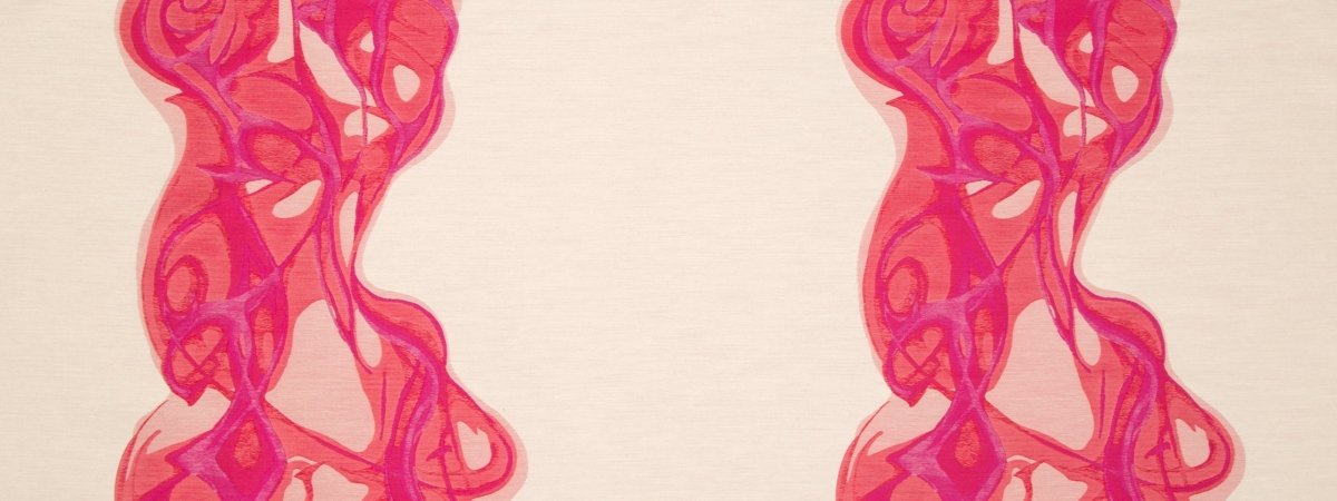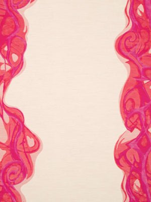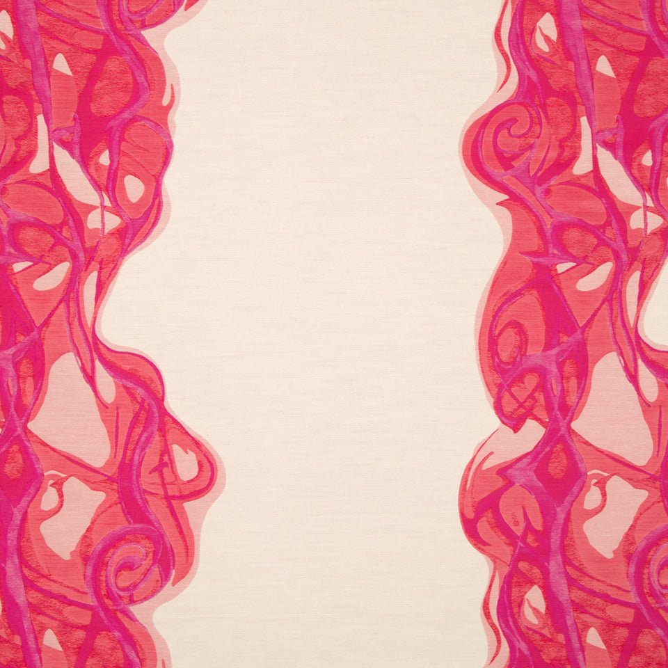 This vibrant Heartthrob pink stripe multipurpose fabric features bold magenta and coral tones with ornate scrollwork detailing on a creamy background. The 100% Trevira Cs polyester construction makes it ideal for upholstery, decorative pillows, curtain panels, and window treatments. Perfect for adding dramatic color and pattern to furniture projects and home décor applications.